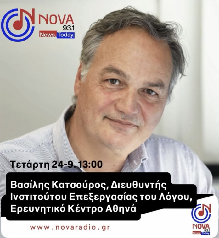 Με αφορμή τη Μεσογειακή Βραδιά του Ερευνητή MEDNIGHT​2025​ ο Διευθυντής στο Ινστιτούτο Επεξεργασίας του Λόγου (ΙΕΛ) του Ερευνητικού Κέντρου Αθηνά κ.Βασίλειος Κατσούρος μίλησε στον Nova 93,1