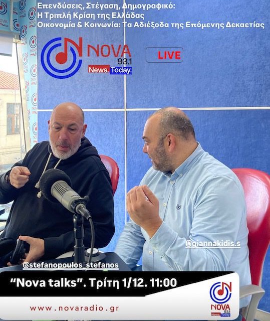 ΑρχικήΚΟΙΝΩΝΙΑNova talks 1/12 "Επενδύσεις, Στέγαση, Δημογραφικό"