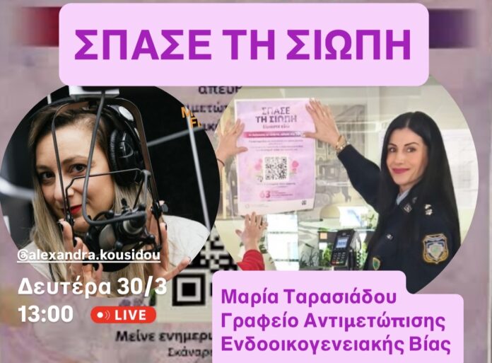 Στο πλαίσιο της ενημερωτικής δράσης , η Μαρία Ταρασιάδου, Υπαστυνόμος Α, Προϊσταμένη του Γραφείου Αντιμετώπισης Ενδοοικογενειακής Βίας του Α.Τ. Ξάνθης φιλοξενήθηκε στην ενημερωτική εκπομπή του Νοvα 93,1,με την Αλεξάνδρα Κουσιδου σημειώνοντας ότι η Ελληνική Αστυνομία υλοποιεί πανελλαδική ενημερωτική εκστρατεία,με κεντρικό μήνυμα «Σπάσε τη σιωπή, είμαστε εδώ», στοχεύοντας στην ενημέρωση και ευαισθητοποίηση της κοινωνίας για το φαινόμενο της ενδοοικογενειακής βίας, καθώς και στην προώθηση της. συνεργασίας μεταξύ φορέων και κοινωνικών δομών.